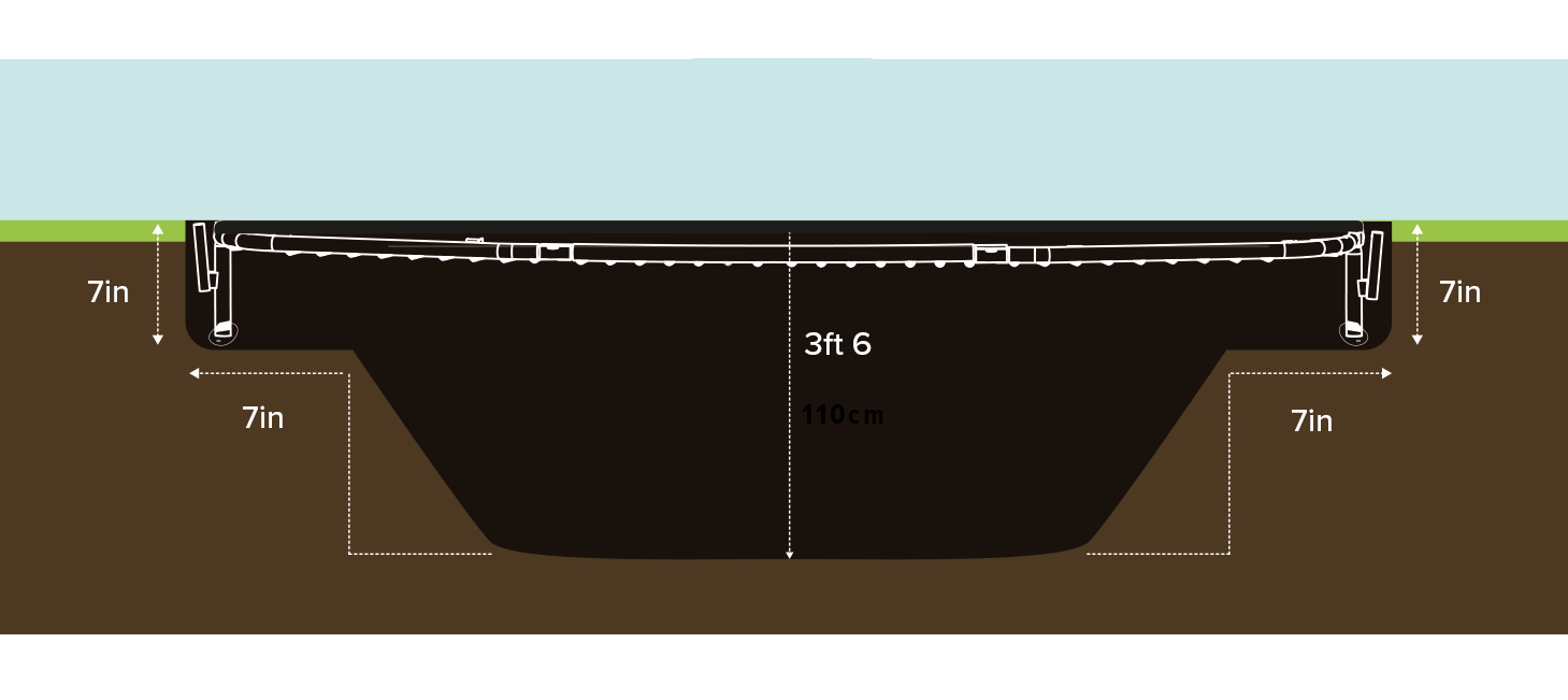 Designed to last underground Galvanised frame and springs designed to cope with the damp conditions underground. Retaining wall included to keep ground secure.